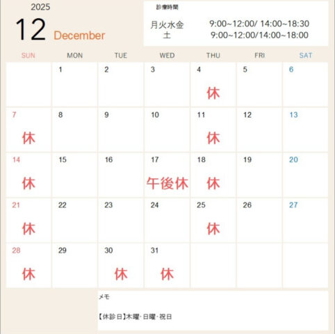 「詰め物が気になる」「少ししみる」などの違和感がある方は、トラブル防止のためにも年内最終の28日までに一度ご来院ください。